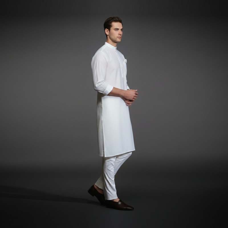 Elevate your ethnic wardrobe with the Bianco Fuji Kurta, a masterpiece of understated luxury. Named after the pearlescent “Bianco Fuji” hue, this kurta captures the essence of sophisticated minimalism. Crafted for the modern man who values traditional silhouettes with a contemporary edge, it features a subtle vertical micro-texture that catches the light with every movement.