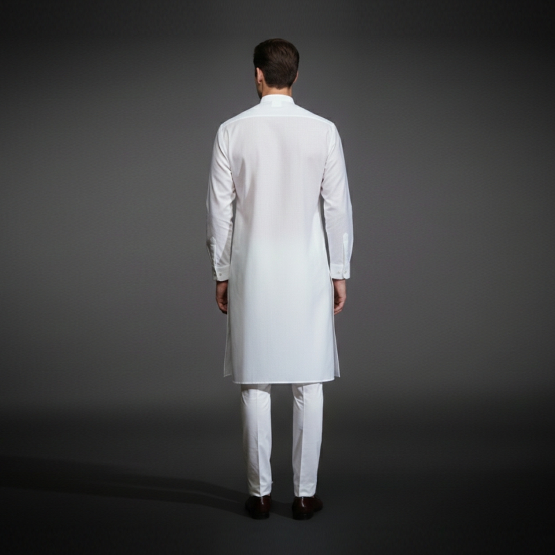 • Refined Details: Features a classic Mandarin collar (Bandhgala) and a clean-finished button placket.