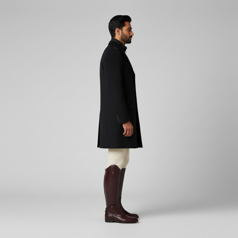 Timeless Aesthetic: A deep black finish that serves as a cornerstone of the modern wardrobe, designed to be reconsidered and revised for both formal and equestrian-inspired looks.