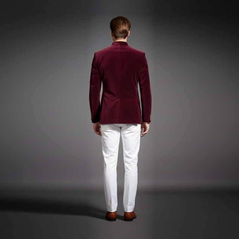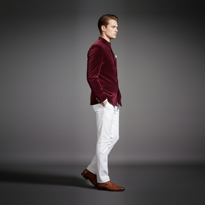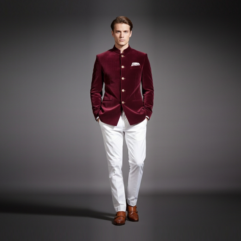 Timeless Elegance: This piece brings back the timeless elegance of the past, featuring a structured mandarin collar and signature gold-tone buttons.